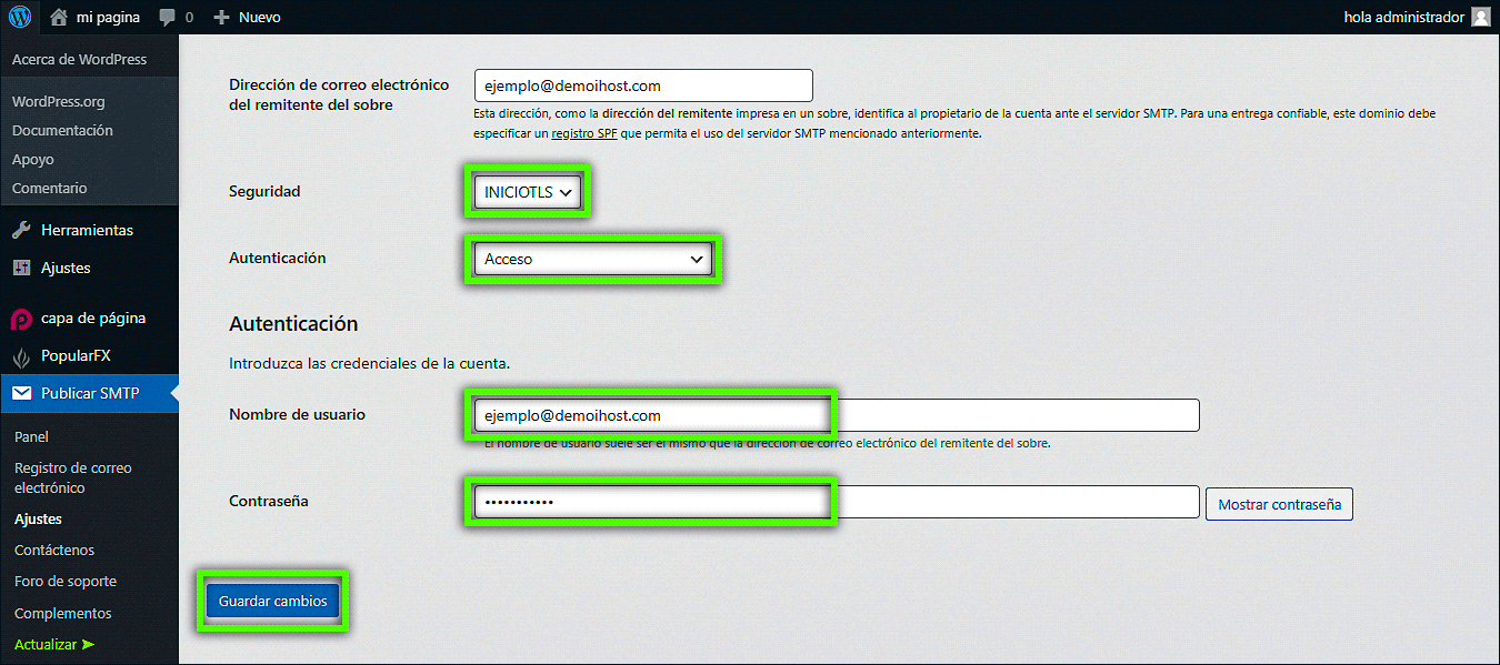 Antes de seguir con la configuración debe de saber los datos del correo para conectar con Post SMTP.