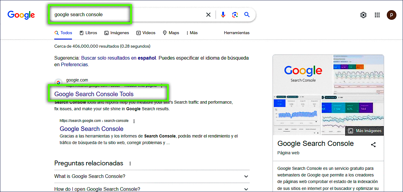 2. Busque en su navegador Google search console y seleccione el Google Search Console Tools.