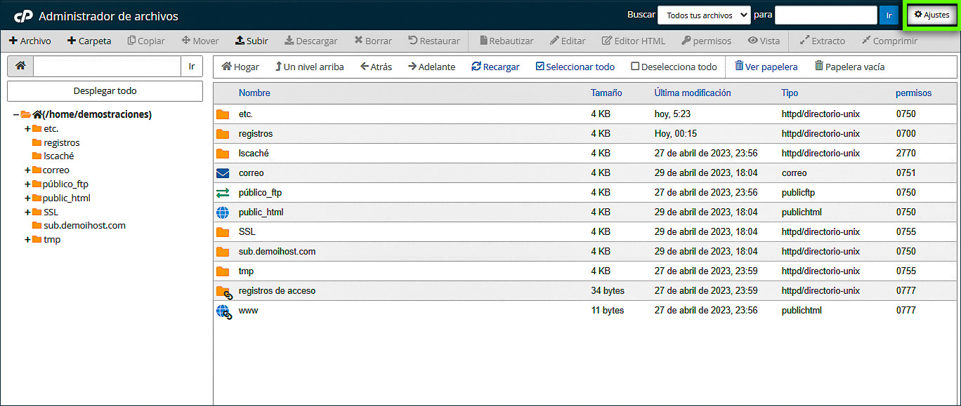 2. Dentro del Administrador de archivos, ubique la raíz o directorio del documento del dominio.