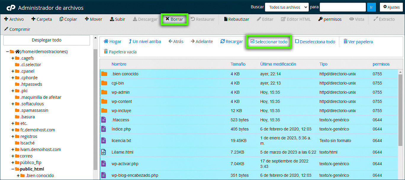 Nota: asegúrese de crear una Copia de seguridad antes de desinstalar su WordPress.
