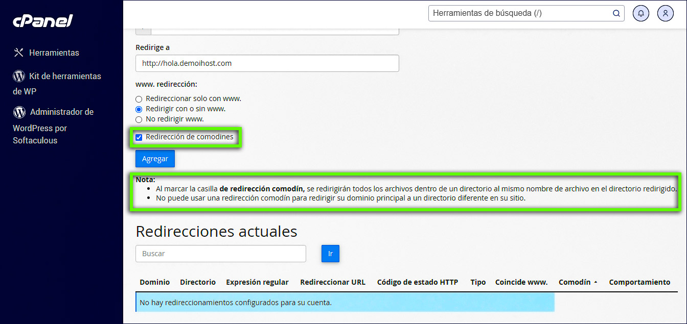 - Con la redirección de comodines, www.example.com/about.html redirigirá a www.example-destination.com/about.html.